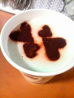 写真は幸せいっぱいのバリスタさんが、ハートを多くしてくれたラテ。